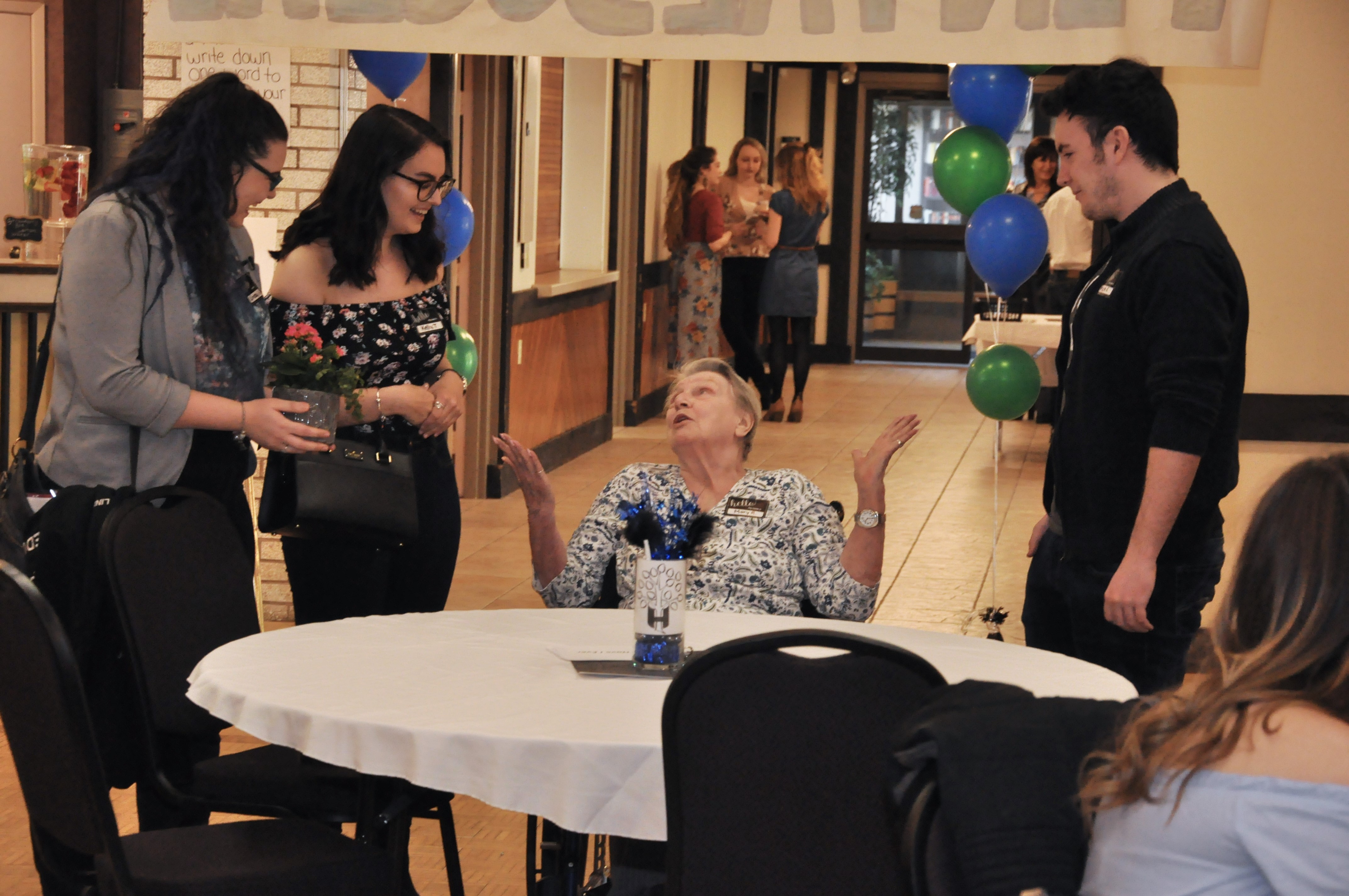 “Reading Hedy’s letters made me so anxious to meet her,” first-year Recreation Therapy student Jodi Eberly said of her pen pal. Eberly along with fellow students Morgan Payne and Keesha Ally corresponded through the project with Heidehof resident Hedy Dueck.