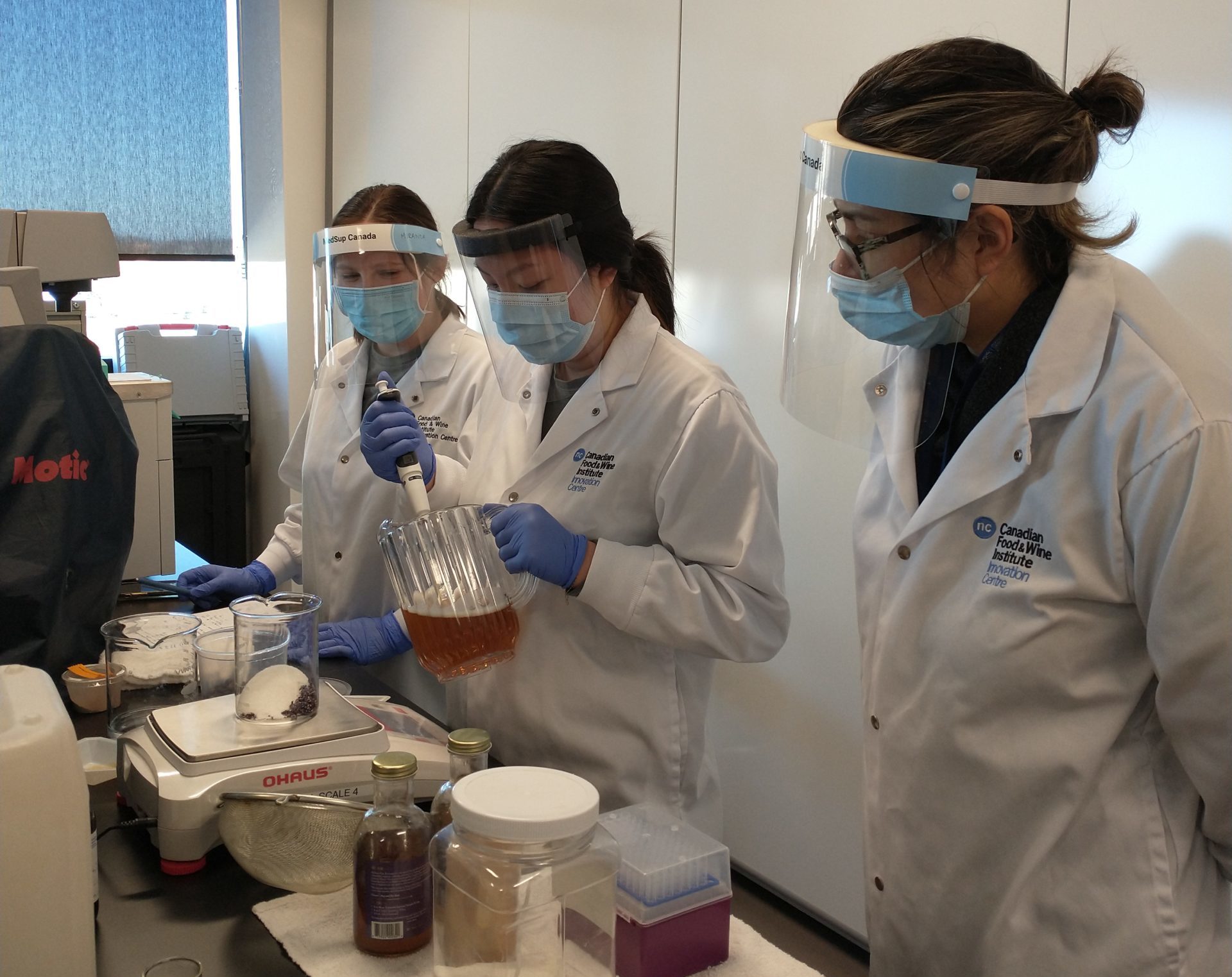 TOP PHOTO: Research students Myranda Amendola (left) and Alison Wong (centre), conduct applied research work in the beverage lab of the Canadian Food & Wine Institute Innovation Centre, at NC’s Daniel J Patterson Campus, under the expert eye of Ana Cristina Vega-Lugo, PhD, scientific manager of the centre.