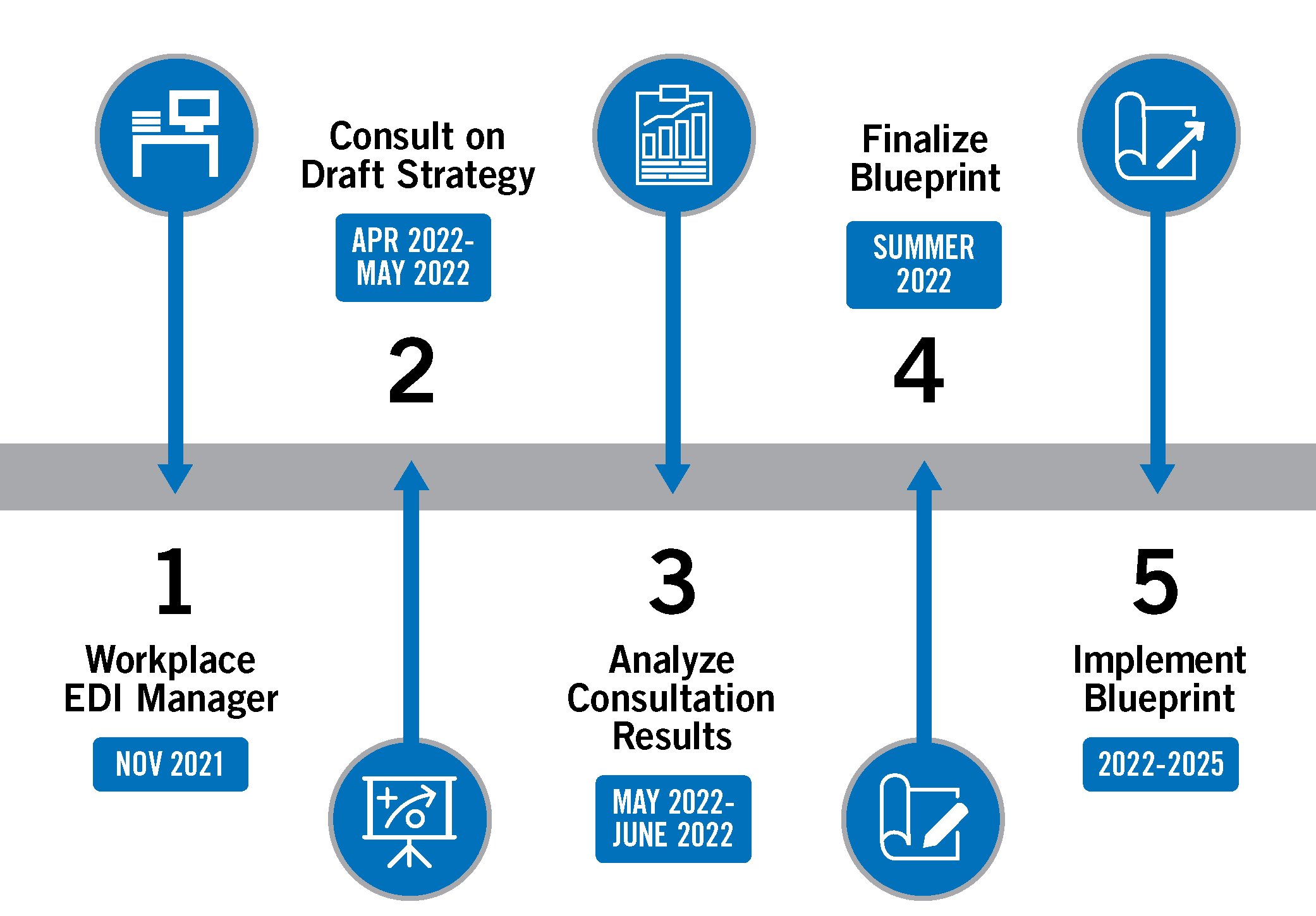 The infographic below illustrates how the information collected from consultations will be used to inform the final EDI Blueprint for Niagara College.