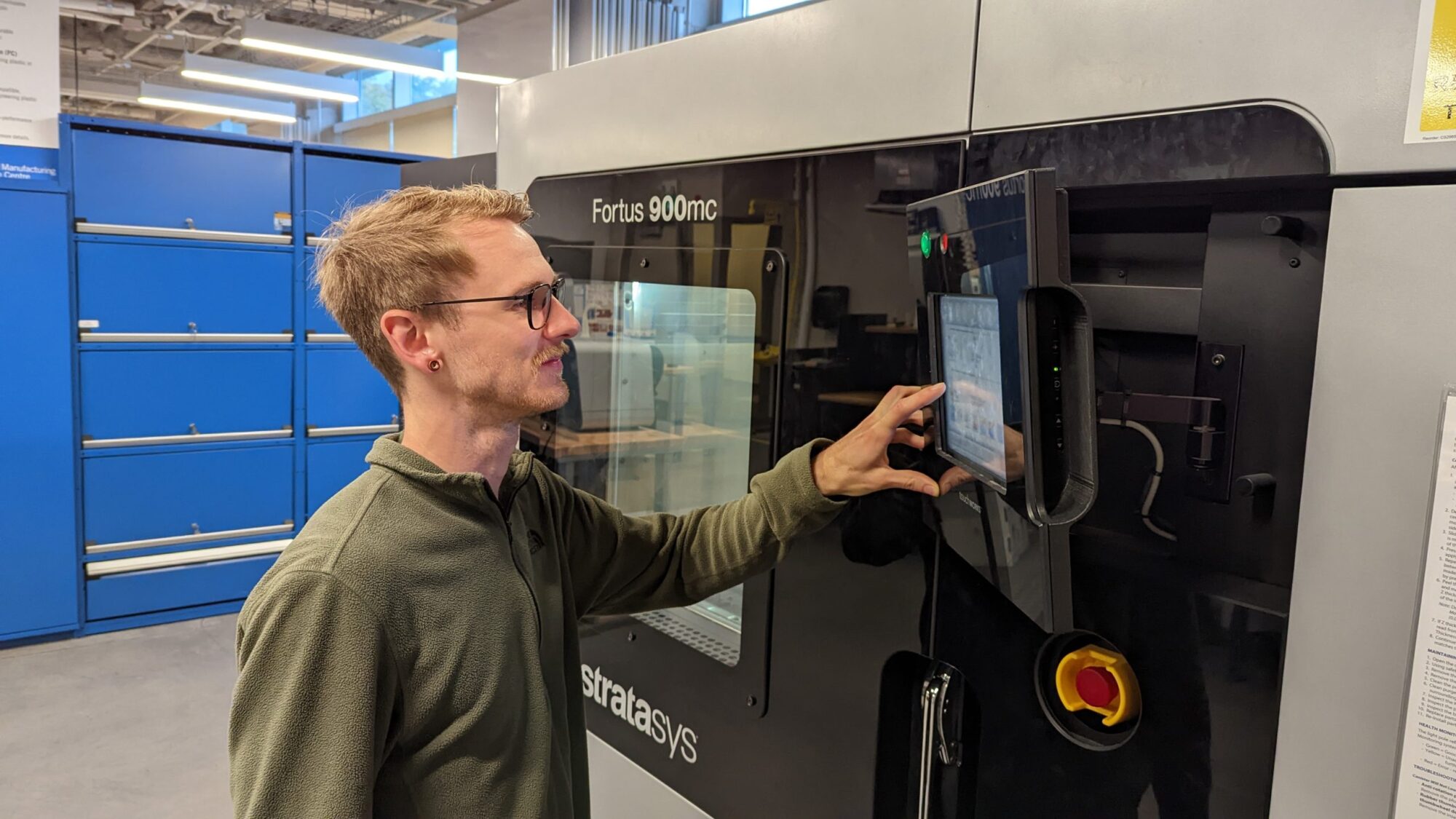 TOP PHOTO: Brock Husak, Laboratory Technologist with NC’s Walker Advanced Manufacturing Innovation Centre, sets up a Fortus 900 3D print machine for an industry partner.