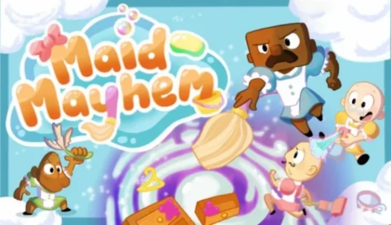 Maid Mayhem, available on Steam, is a two-to-four-player competitive party game where players take on the role of big buff bald maids as they speed-clean Grandma Twiggy’s house. Maids need to whack the furniture to clean it and can also hit each other to knock out their competition.