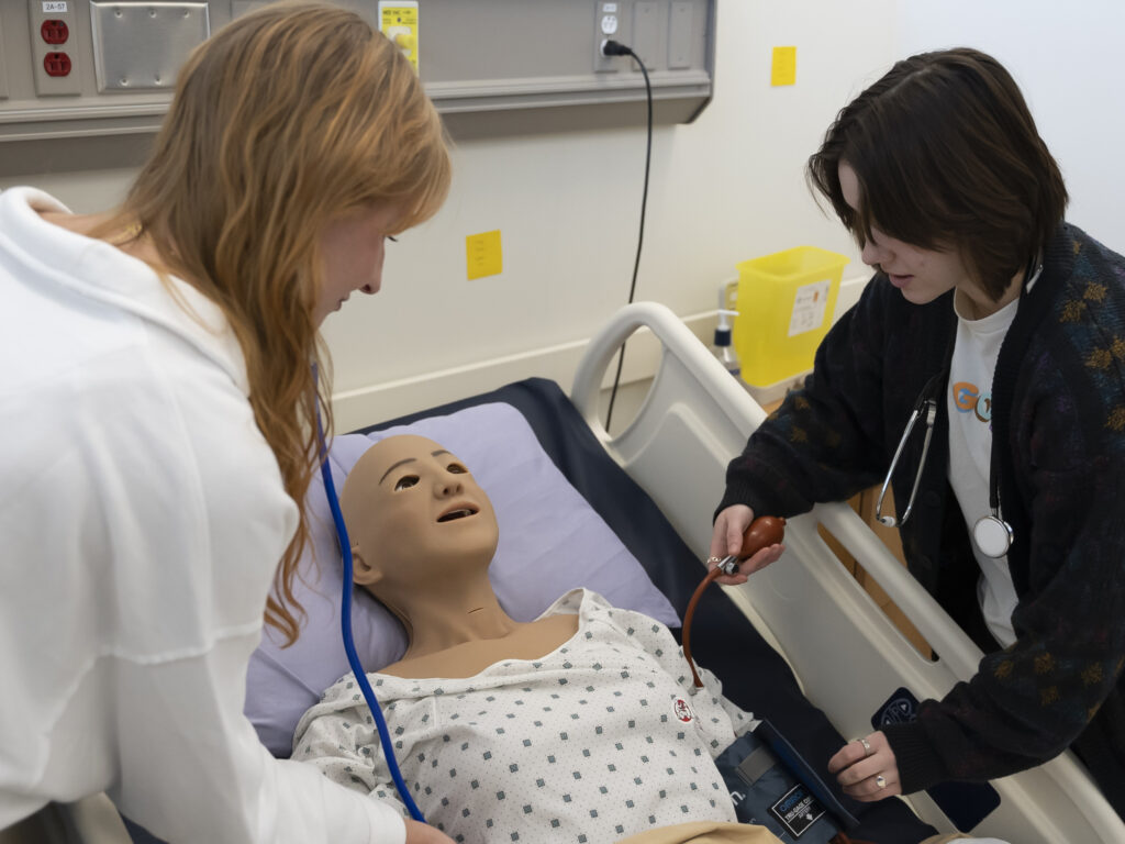Practical Nursing students Tasha Labrie and Lauren Adamson are gaining experience working as Research Assistants in a study that seeks to identify ways to help nursing students feel more confident before skills tests or before they enter clinical settings.