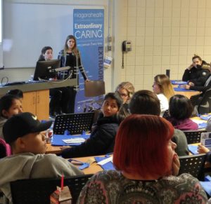 After a networking lunch, students attended informal break out sessions with representatives from the NHS and Region of Niagara Public Health, as an opportunity to ask questions and gather more information about specific careers, credentials needed to pursue specific careers, and volunteer opportunities.