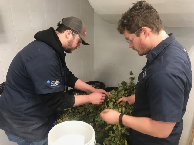Niagara College Brewmaster Jon Downing saw potential in that accidental experiment, the fruits of which are now available for sale in the NC Teaching Brewery. To create what Downing has christened a ‘frost-hopped beer,’ several bines of hops in NC’s own on-campus hop yard were intentionally left on the bine until the first frost of the year. In a manner reminiscent of the much more famous making of Icewine, Downing and several students harvested the hops the morning of the first frost, and kept frozen until added to a batch of NC’s Zwickelbier. “We ran out there and pulled the hops off and plucked the cones before they had a chance to thaw. Our fingers were freezing the whole time,” said Downing.