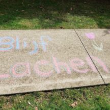 Seeing the impact, Wilkinson reached out to recreation therapist and NC alumna Lana Reid at Ina Grafton Gage Village where several families chalked the courtyard and walkway around the building. The drawings were visible to residents from the safety of their windows, many making requests to kids for personalized drawings and messages. One resident from Barbados called out and asked for a palm tree. The family drew him a beautiful island scene. Another family chalked “Blijf lachen,” Dutch for “keep smiling,” after discovering a residents Dutch heritage.