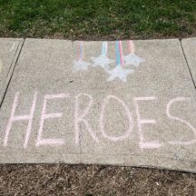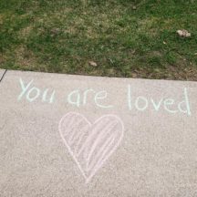Wilkinson and Heather Vokey, manager of Life Enrichment Services at Heidehof, explored ways to spread positivity to staff. Inspired by a ‘Chalk the Walk’ campaign on Facebook, Wilkinson rallied other families in her neighborhood – staggered to abide by physical distancing measures – to write messages to staff outside of Heidehof. The walkway was covered in messages like “health care heroes” and “brighter days ahead,” which moved many of the staff to tears on their way in and out of the home.