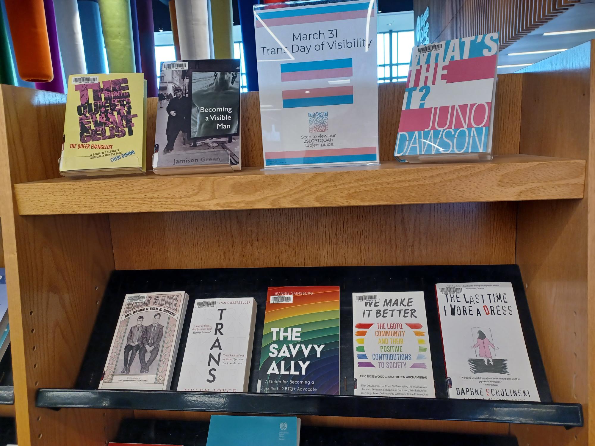 Featured resources for Trans Day of Visibility at the Daniel J. Patterson Campus in Niagara-on-the-Lake.