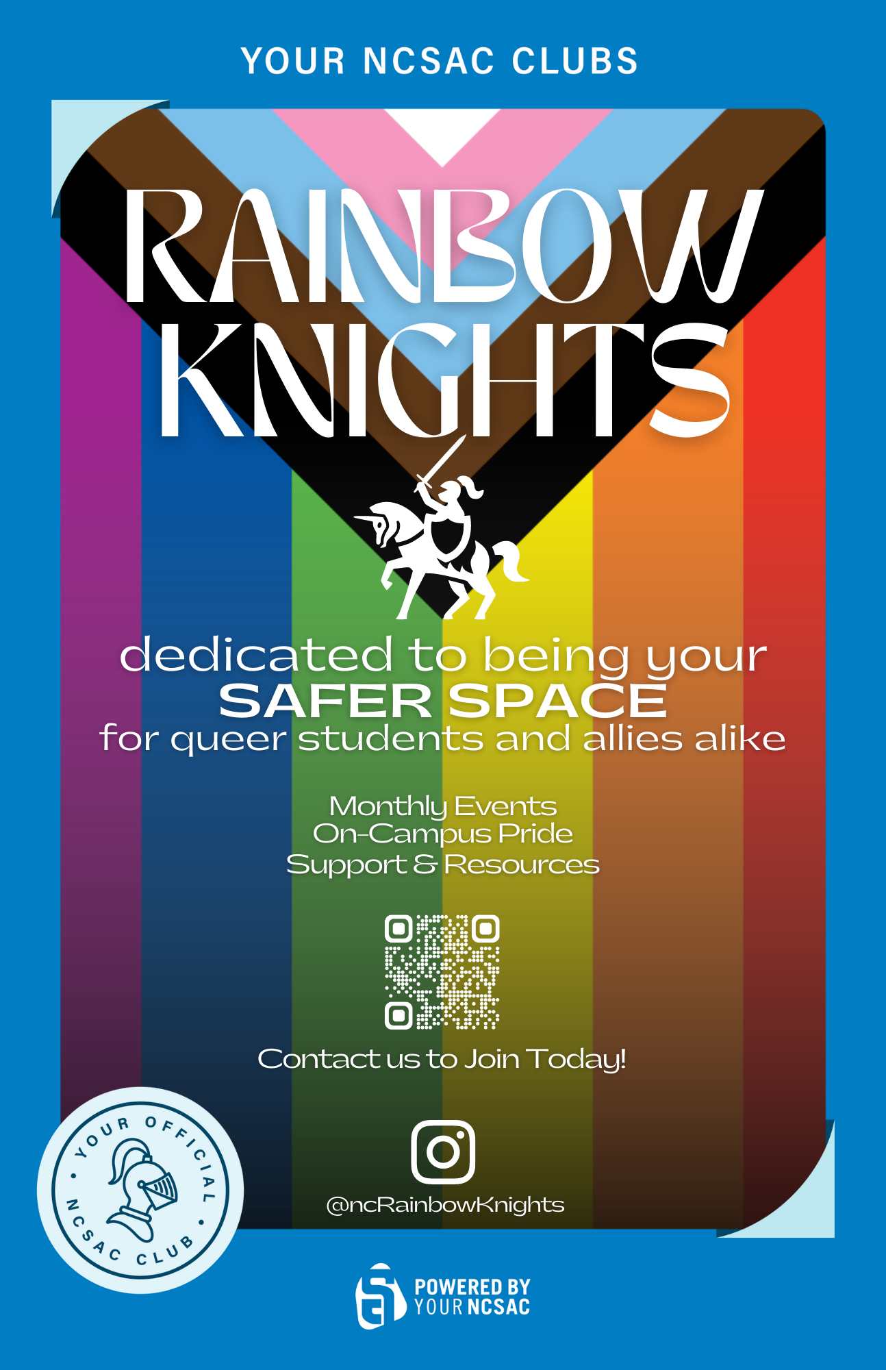 NC students can join the Rainbow Knights by visiting NCSAC’s website (click on “Your Clubs,” “Join a Club!” and scroll down to find the Club’s listing). Students, employees and allies can follow the Club on Instagram @ncrainbowknights for the latest updates and events.