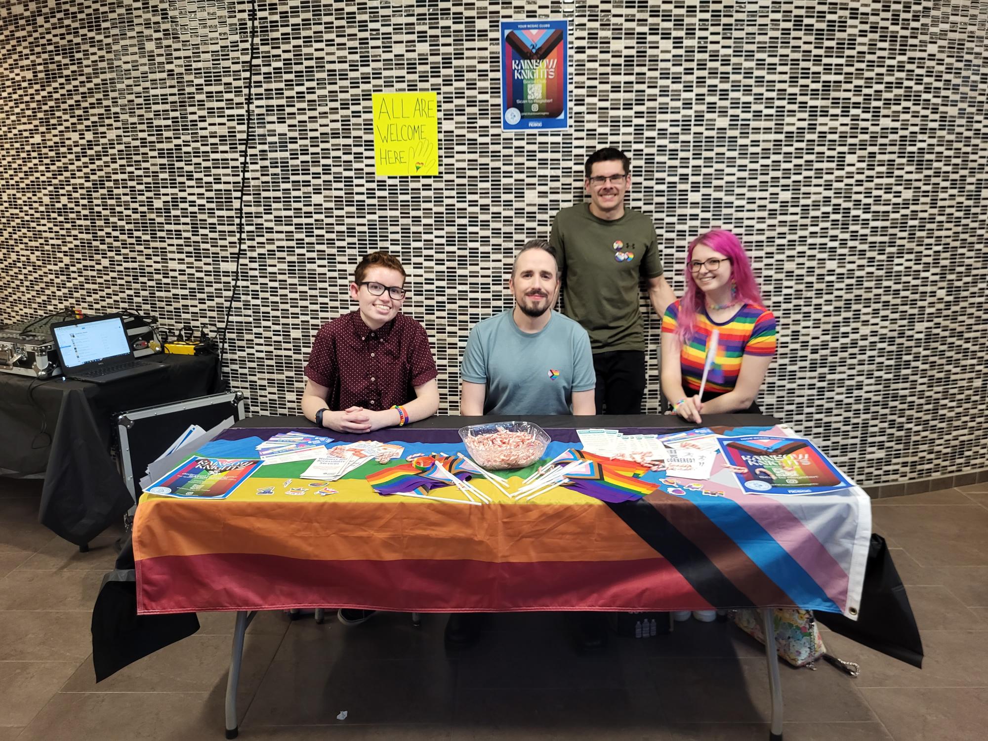 Members of the Rainbow Knights student club at the vendor fair, hosted at the Welland Campus on Nov. 22. L-R: Miles Metcalf, Steve Mackett, Bruin Pol (back row) and Christy Engemann.