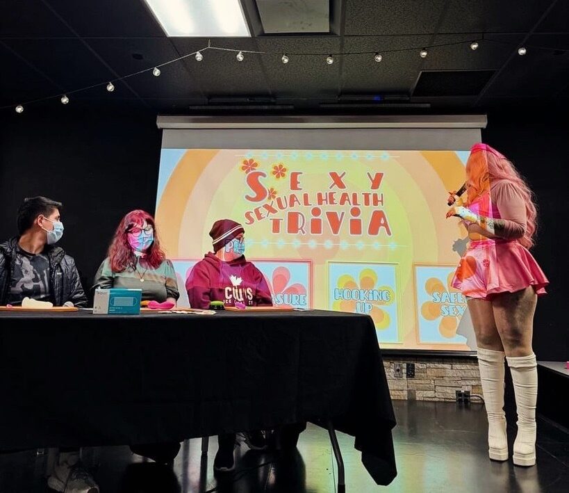 On January 24, Samantha Bitty engaged 70 students on the importance of consent in an evening trivia and gameshow night. Bitty is a Toronto-based sexual health and consent educator drag queen whose trivia gameshow was playful and interactive, using humor and tact to promote safer sex, consent, relationships and communication. Students were called up to the stage to play the trivia game and won prizes.