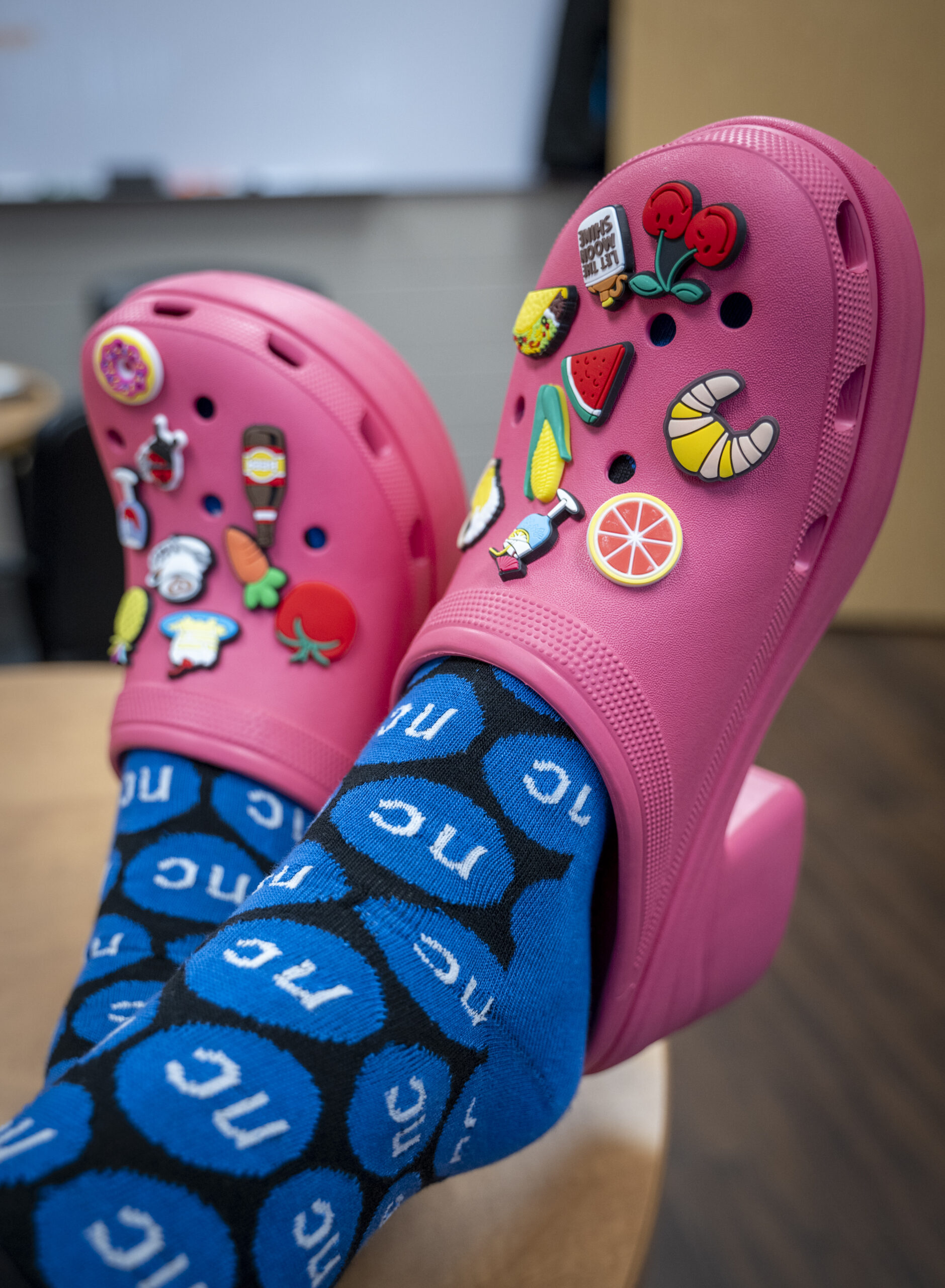 Craig Youdale, NC’s Dean of Culinary, Tourism and Beverage Studies is gearing up to march with a mission in decked-out, heeled pink crocs.