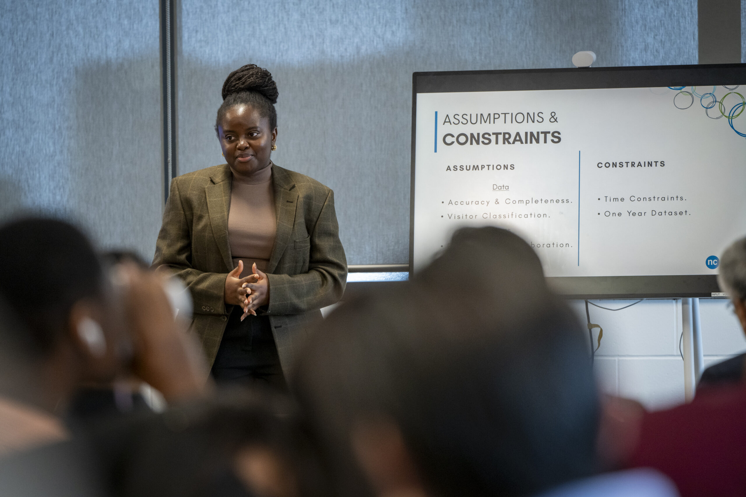 Students presented their findings at the Daniel J. Patterson Campus to professors, industry partners, classmates, and members of the NC community, offering insights into strategic directions while answering questions from the audience.