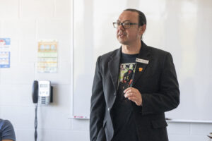 Dockstader welcomed employees and students to the event and shared the importance and significance of the Moose Hide Campaign and how it came to be.