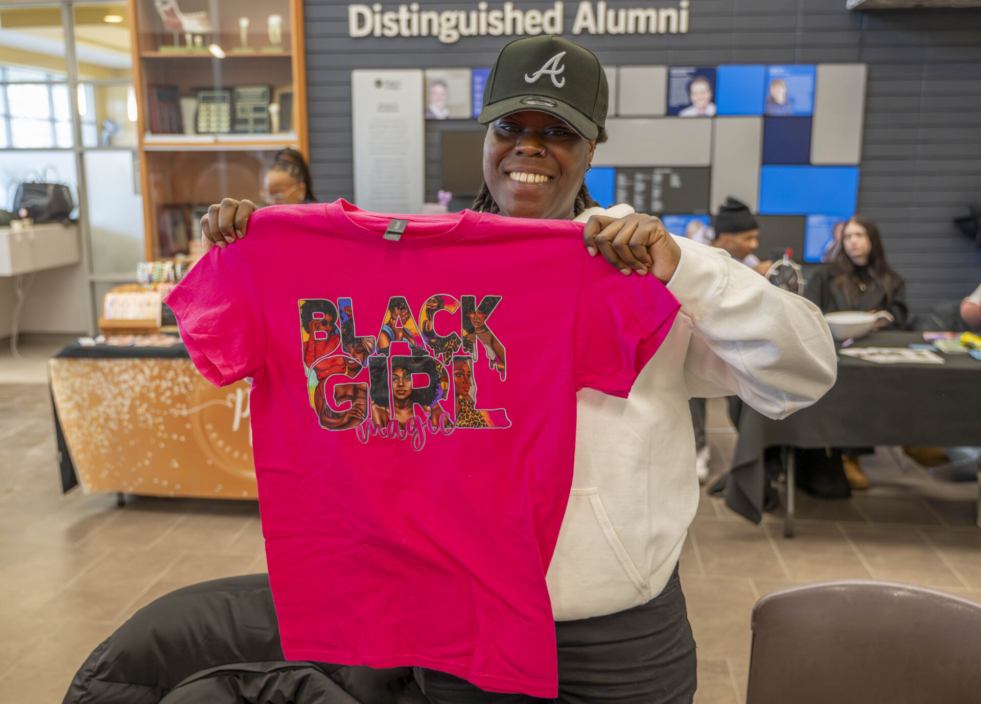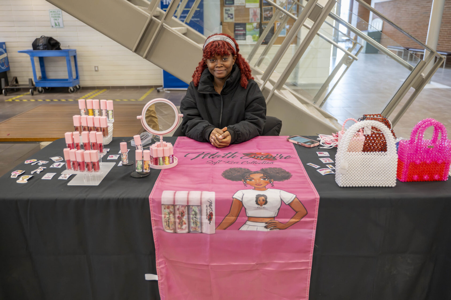 NC student entrepreneurs also showcased their talents, including Electronic Engineering Technician student Alida Mathilde Mekontso’s Math Empire with beaded bags and lip gloss, and Computer Systems Technician student Tamara Brushe’s BusyBee Prints, offering custom t-shirts created live at the market.