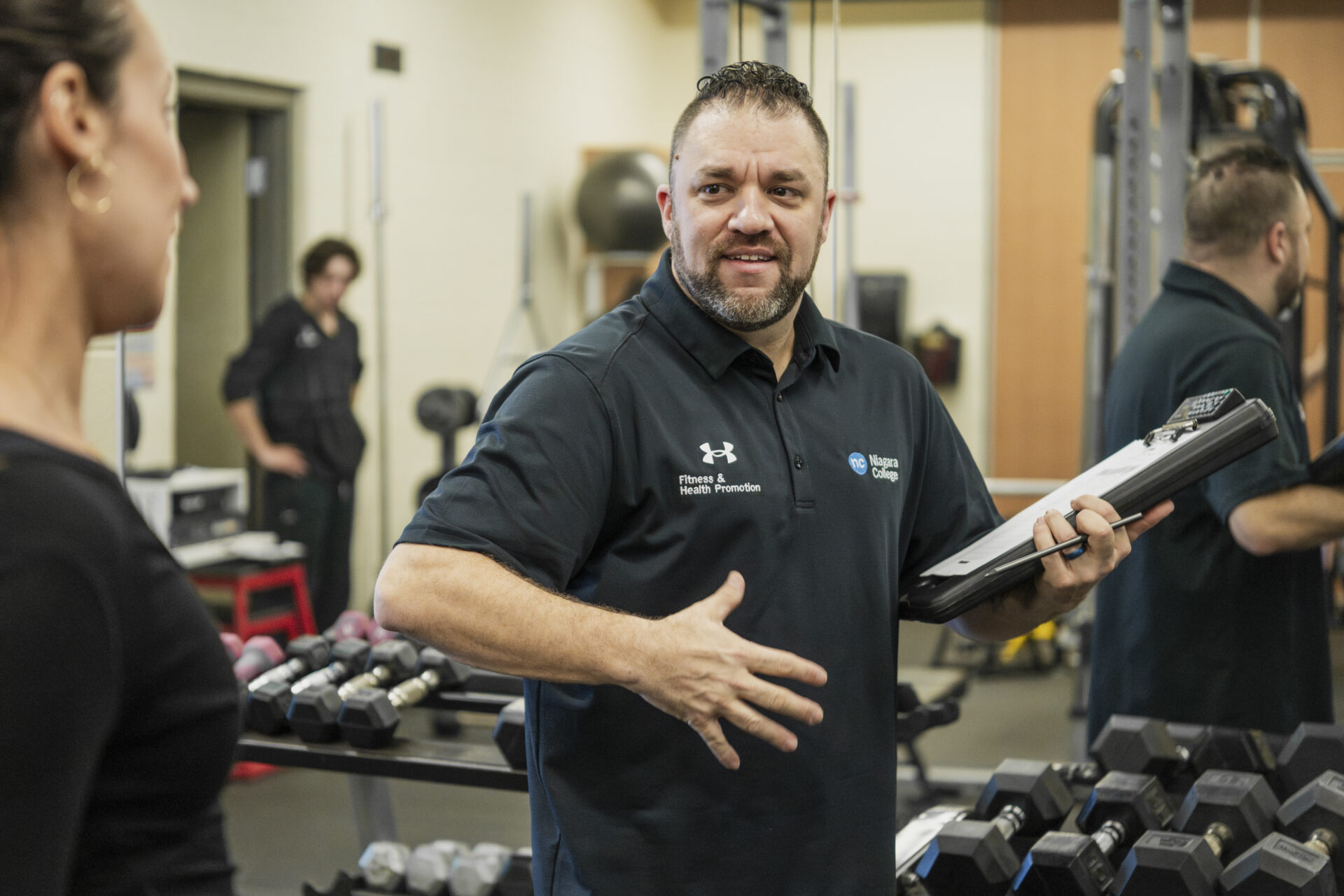 During the final term of the winter semester, students in the Fitness and Health Promotion program complete a Personal Training course designed to provide hands-on experience. Throughout the term, each student works weekly with two clients, motivating and coaching them toward meaningful fitness progress.